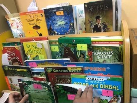 The students began to minutely examine their environment and question why things were done in a certain way. They asked why I had arranged the library according to language and suggested that reading material should be divided as per levels, so that each child could select a book quickly and easily rather than having to peruse the entire language section to find a suitable read. I asked them to introspect on how many levels there should be to cater to all needs which resulted in a round table conference where an honest discussion took place with everyone’s opinions being considered. It was decided there should be three reading levels, which were then sorted and arranged by the young readers themselves. The children painstakingly went through each book, then proceeded to colour code and organize them in a manner that made sense to all.