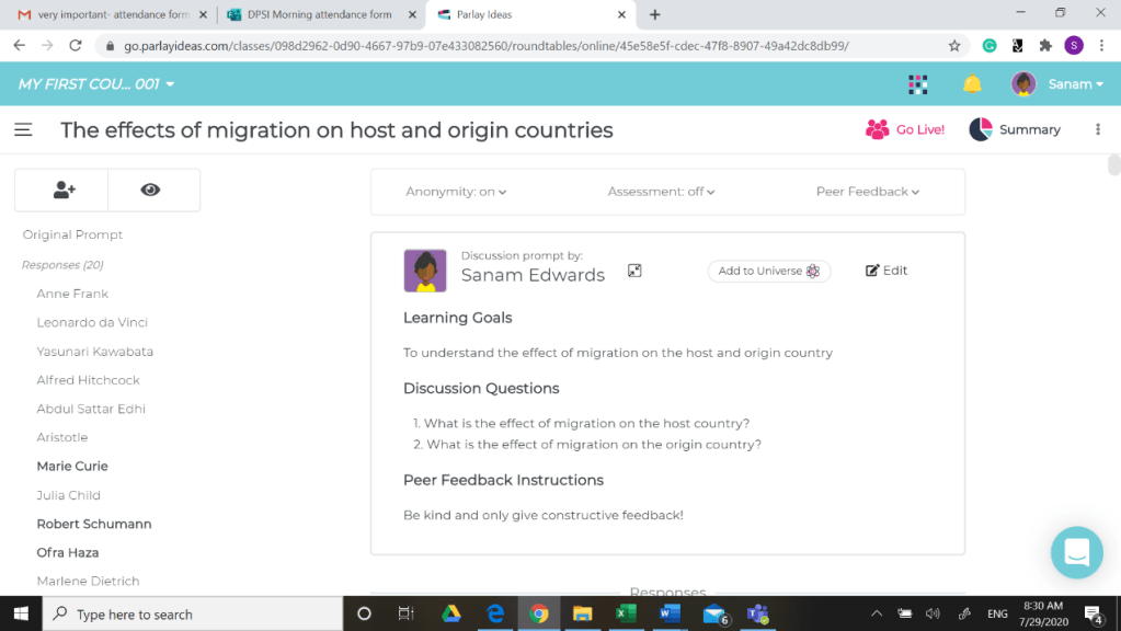 I, for one, have always enjoyed technology and ever tried to incorporate it into my classroom. I find myself continually researching new technology tools that could make my lessons more engaging and ensure that my students are assessment ready despite learning remotely. In my wanderings on the net, I came across a site called Parlay Ideas. The site claimed to be a legitimate tool for peer review while encouraging student creativity and positive critique. This site piqued my interest as I find that peer review is tough to do online. As a school, we use teams for our daily lessons. While this is an excellent tool to regularly execute classes and collaborate in smaller groups through breakout rooms, there is yet to be an update that includes peer review as part of the student learning process.