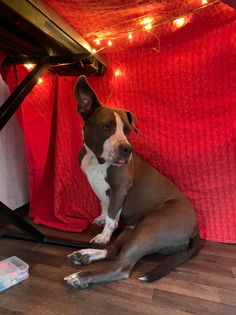 Once my tent was constructed, I fetched a cup of coffee and began to organize the material required to entertain my students. By the time I came back, I had found our pit-bull Candle enjoying my play-space. I think she wanted a change of scene as well!