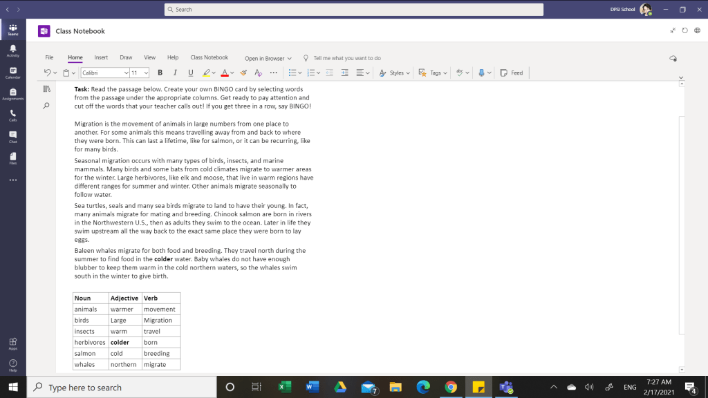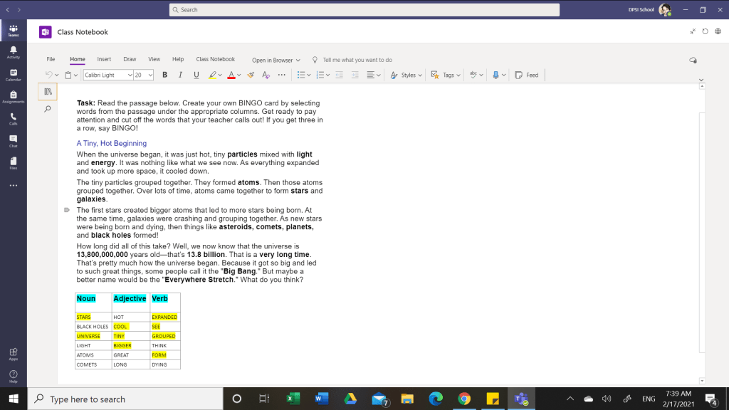 Getting grammar points across while making sure that students stay awake and alert can be a challenge. In my first lesson using this tool, I focused on the parts of speech. As we were working on Microsoft Teams, I assigned them a unit-related passage to read. Students had to then pen down the nouns, verbs, and adjectives into the table provided below the article. Pupils had to read the composition deliberately, ensuring that they understood every word’s meaning to place the words in the columns correctly.