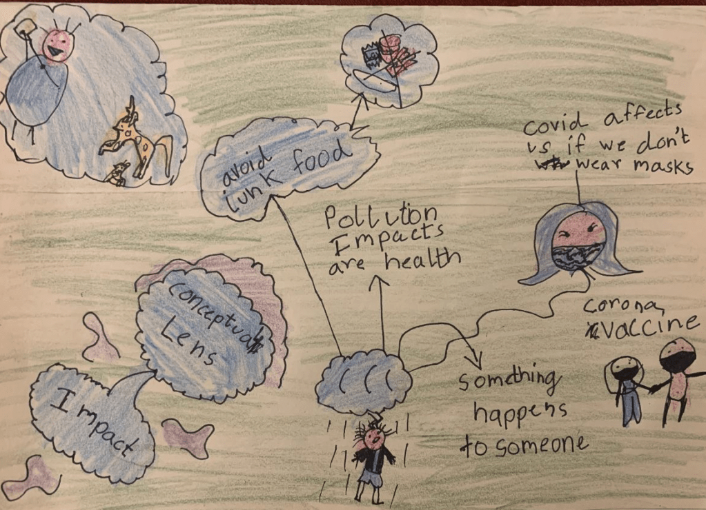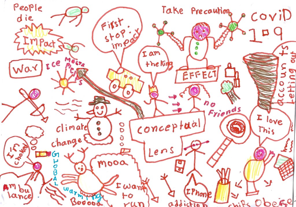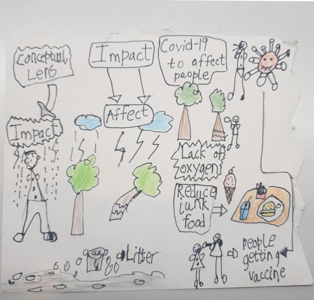 Sketch noting with my third graders has been on my mind, and when the new session rolled around, I squandered no time getting down to business. I commenced getting to know my students in mid-July, and towards the end of the month, I had already established that they were a creative bunch. It was time to present our first unit to them, and I chose to begin by giving them a glimpse into our conceptual lens, ‘Impact’. A conceptual lens is the focus of a unit, and although our unit was centered on waste and how we manage it, the ultimate emphasis was the impact it has on us and the environment.