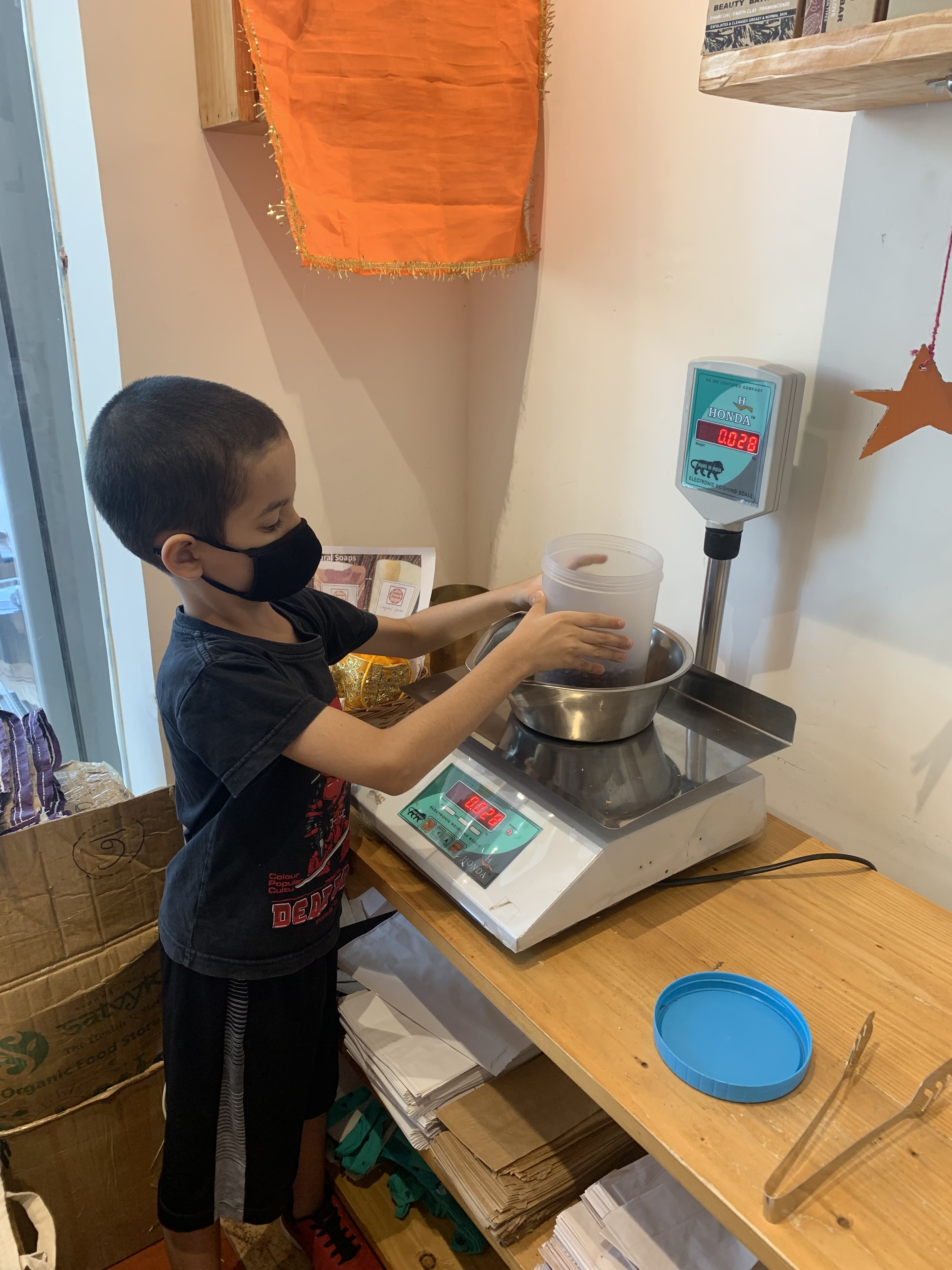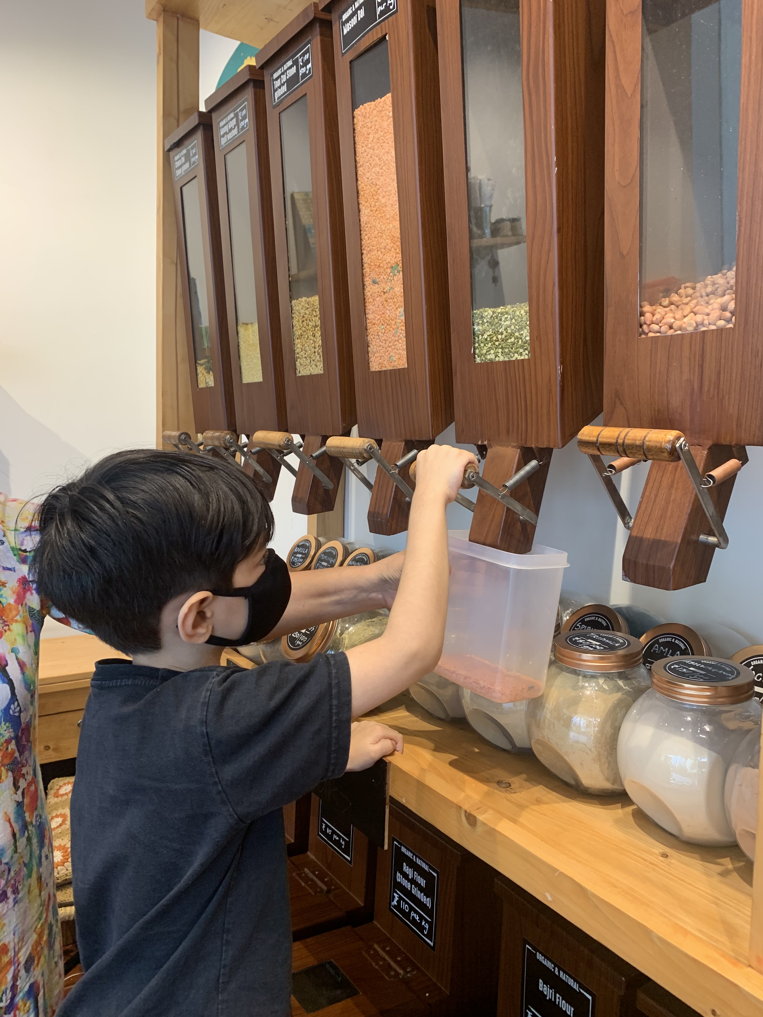 We identified a store in Gurgaon that sells organic produce in bulk called ‘Adrish’. We take our bottles/jars to the shop and fill them up with grocery goodness. The products are weighed and billed according to the amount taken, resulting in a zero-waste transaction. Ninety percent of our plastic waste consists of food packaging, so we hope to make this a regular activity to cut out as much waste as possible.