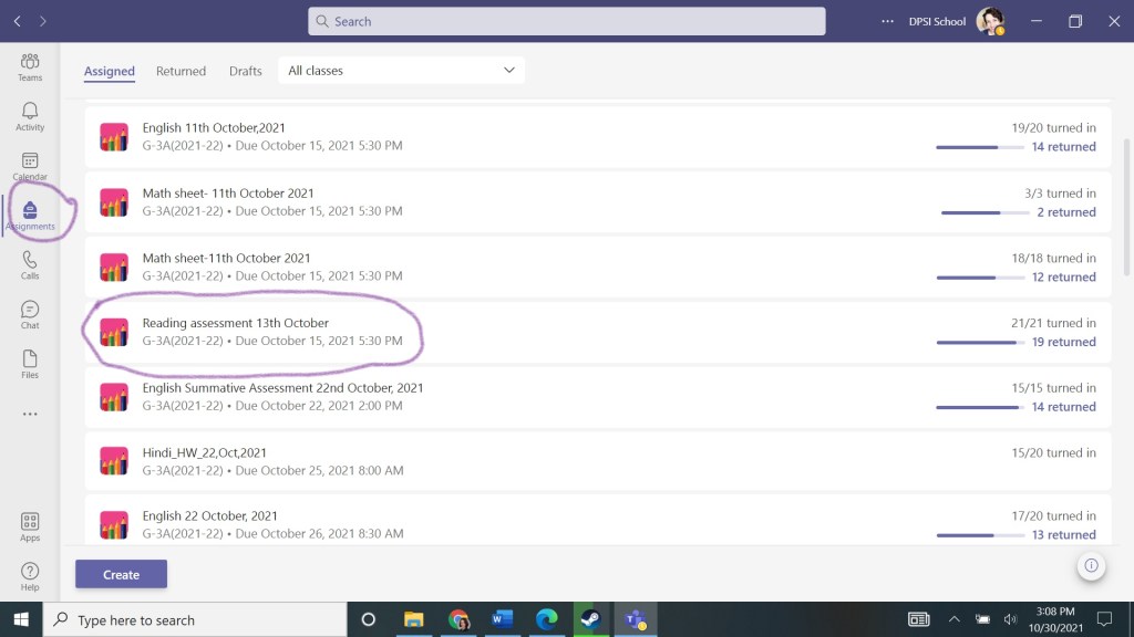 The assignment will now be visible in your ‘Assignments’ tab on the left. Click on it to access student submissions,