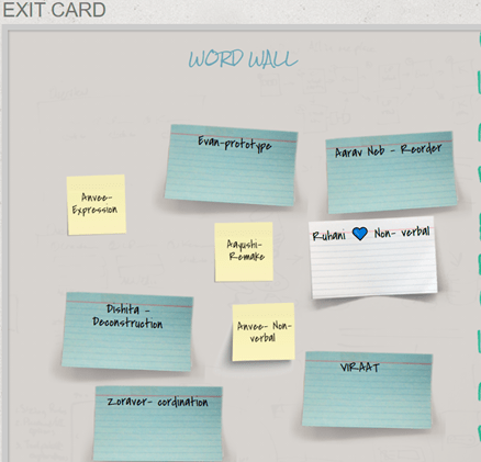 Entry cards and exit cards are fun-filled formative assessment tools that help teachers get quick reflections or revise any concept as the students enter or exit a class. In addition, it brings in curiosity, play, and brainstorming possibilities for the students. Scrumblr can develop virtual entry and exit card games through sticky notes and letters.