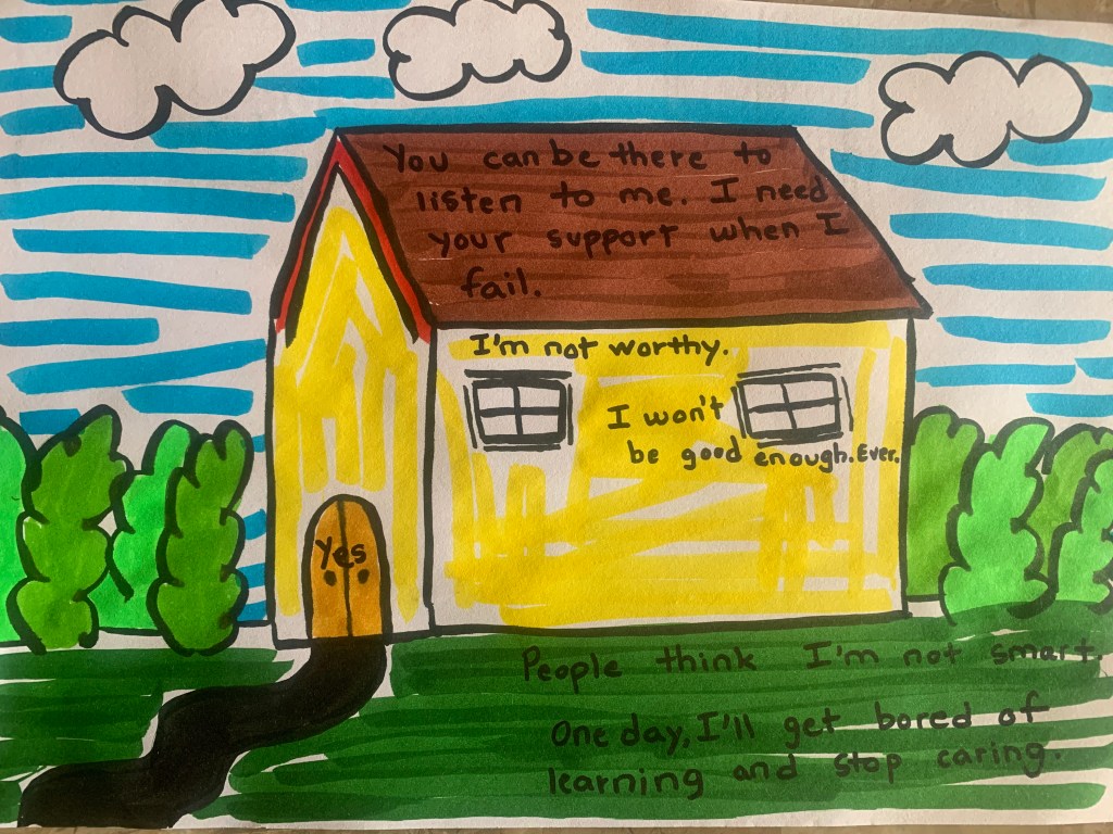 6. The roof- Lastly, ask the students to focus on the house’s roof. Remind them that the roof of a home is solid and ask them to write down (on the roof) ways in which you can help them. Repeat that you are a form of protection for them and will always be there for them, and you will be able to help them better if they can tell you what you can do to make them strong.
