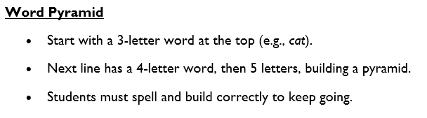 The instructions for Word Hexagons are self-explanatory! Teachers can modify these to ask students to create only verbs, nouns, or any other part of speech.