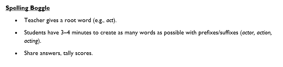 For instance, in the above example, students are required to use the given word to form multiple new words by rearranging its letters. A child who lacks vocabulary may create only a few 2-3-letter words. On the contrary, a child with a vast vocabulary will form more complex words. These are excellent indicators for teachers to identify areas where they need to focus their attention on individual students.