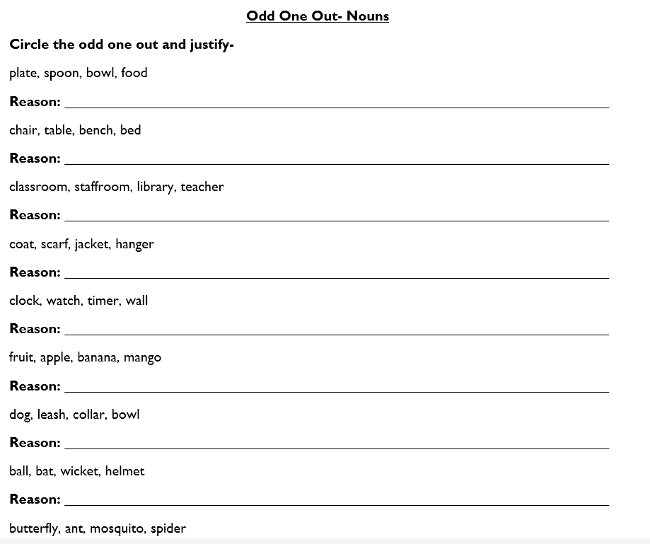 Parts of speech can be connected to various critical thinking tasks. A few examples are given below.