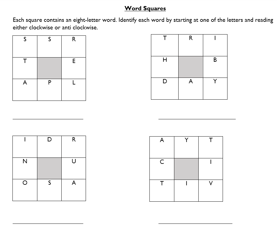 Providing students with letter hexagons, word searches with riddles, word boxes, and odd one out exercises are a few ways for students to apply their thinking skills while solving puzzles.